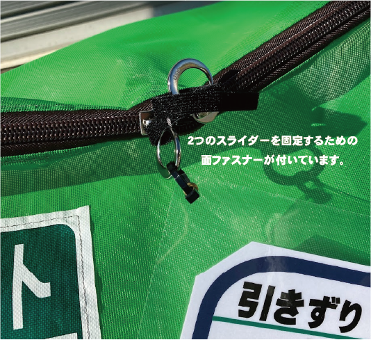 ◆ファスナーがカラスが開けられてしまわないように、